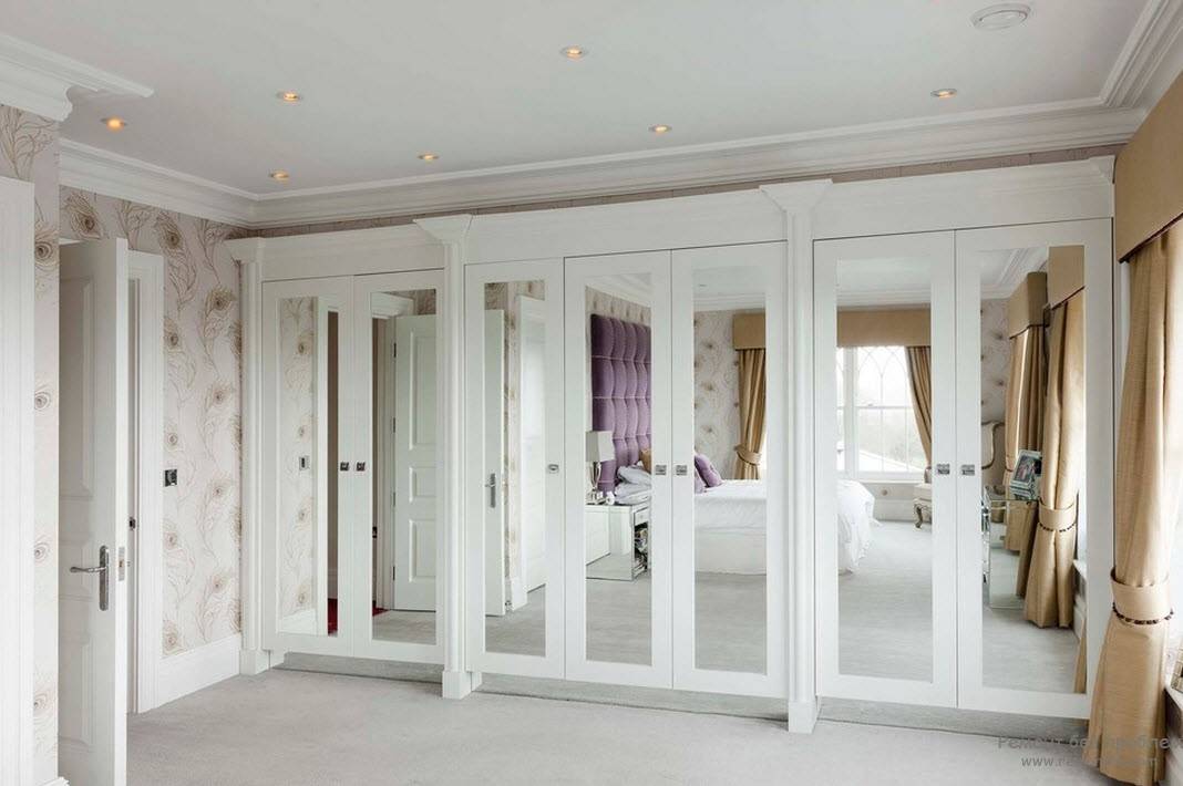 - зеркальная поверхность. Если размеры помещения оставляют желать лучшего, шкаф-купе с зеркалами поможет зрительно увеличить небольшое пространство. Узкая гостиная со встроенным шкафом – практичный вариант, благодаря которому можно эффектно украсить интерьер. Для изготовления зеркальной поверхности может использоваться серебряный или бронзовый, материал, что позволяет придать фасаду оригинальную цветовую палитру;