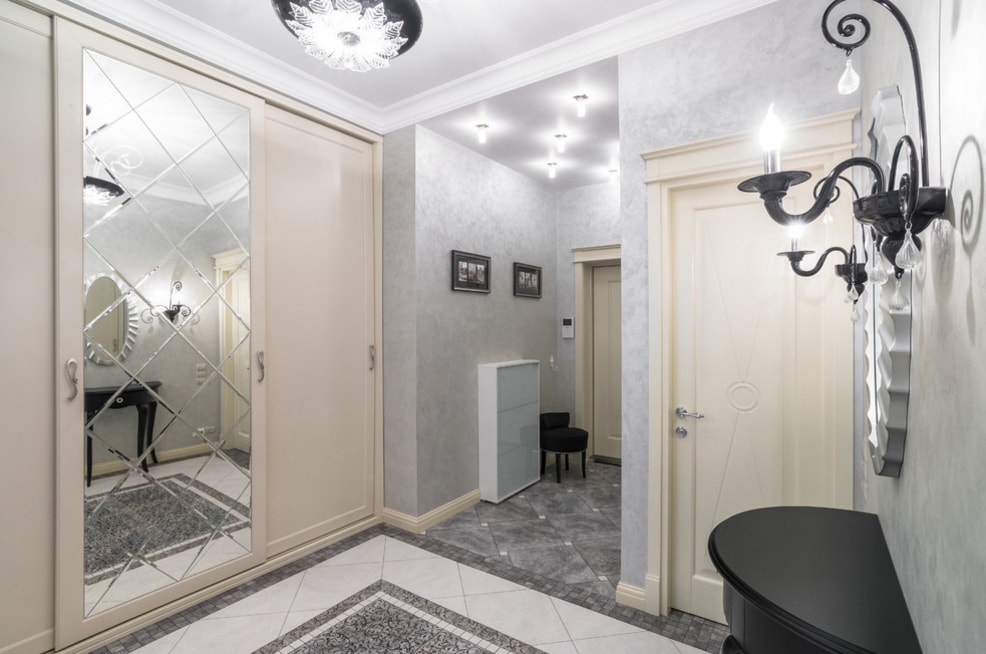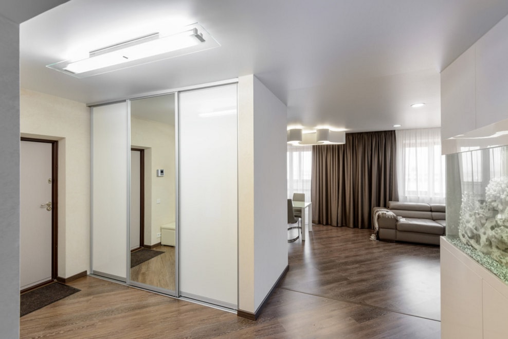 Если площадь прихожей довольно велика, то самый правильный вариант – поставить туда шкаф-купе. Дело в том, что благодаря его вместительности, вы с легкостью сможете поместить туда всю верхнюю одежду своей семьи. Поэтому в остальных комнатах будет намного проще организовать пространство.