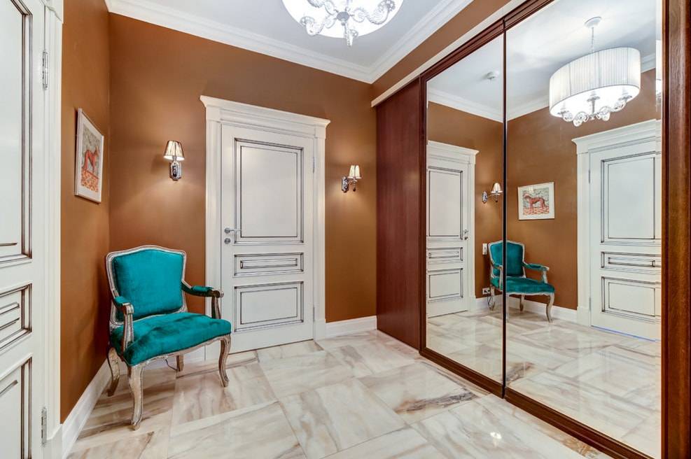 Если вам хочется больше простора и воздушности в помещении (например, гостиная слишком маленькая), вставьте полностью зеркальные двери. Зеркала — один из самых простых и действенных способов визуального расширения пространства.