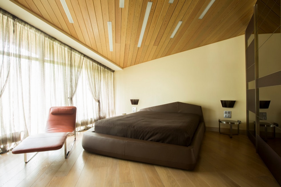 Такой шкаф за счёт нейтральной природной расцветки хорошо сочетается практически с любым дизайном интерьера. Он может как гармонично продолжить интерьер комнаты, так и стать главной отличительной чертой. Однако, использование дорогих материалов ко многому обязывает. Если вы можете позволить потратить на этот предмет интерьера солидную сумму, то не стоит скупиться и на материалы для отделки стен и пола, а также на сопутствующую мебель.