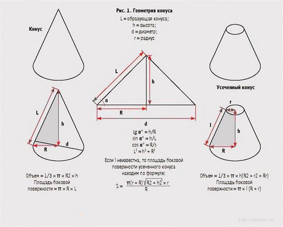 Чаще всего конические формы служат украшением. Они не несут функциональной нагрузки. Надо знать диаметр основания конуса, длину ската. При расчетах площади конуса определяется количество необходимых материалов.