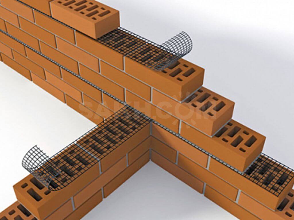 Обычно сетку укладывают в первом ряду, между кирпичом и фундаментов, а точнее, гидроизоляцией. Сетка укладывается как раз на рубероид или другой материал. Затем, при поэтапном строительстве кирпичного забора, она располагается в кладке каждые несколько рядов (примерно каждые полметра).