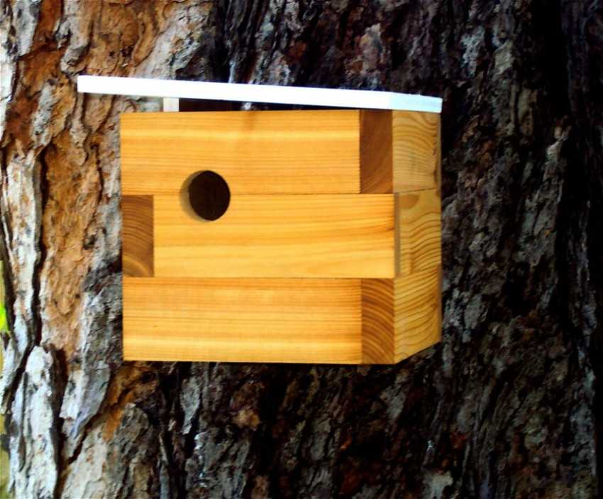 - Птичий домик должен иметь достаточную теплоизоляцию, защищен от шума, влаги и сквозняков. Для этого деревянный скворечник делают из досок толщиной не менее 20мм. Швы и щели домика заделывают глиной, пластилином или паклей.