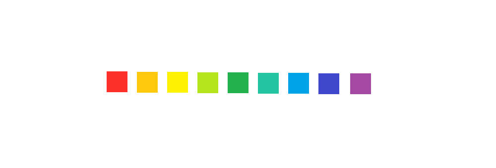 Образцы цветов одинакового цвета, но разной насыщенности. Насыщенность каждого оттенка заканчивается серым цветом.