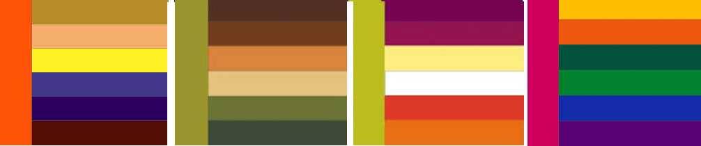 Несколько цветовых сочетаний на основе бежевых оттенков с добавлением цветных акцентов