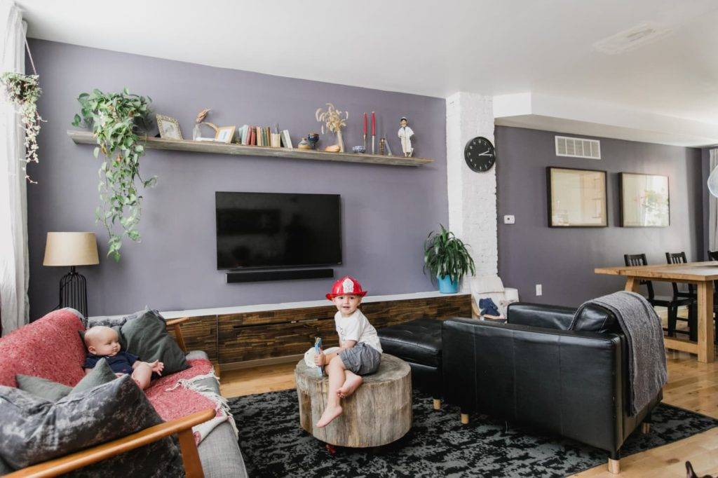- Черный и сиреневый в интерьере одной гостиной не используются из-за несовместимости цветов.