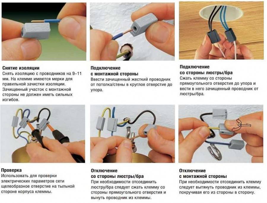 Скрепление проводов при помощи клемм