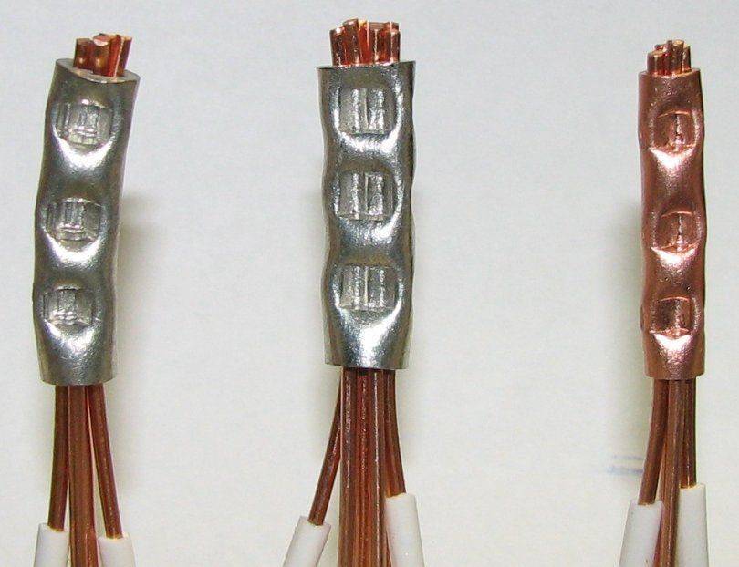 Способ подразумевает применение специального инструмента. Опрессовку гильзами выполняют при работе с алюминием или медью. Соединение выполняют так: