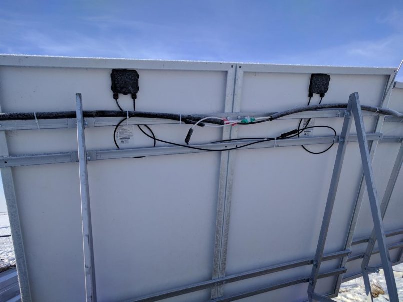 Подключение солнечных панелей осуществляется посредством задействования встроенных соединительных проводов сечением в 4 мм2. Лучше всего для этой цели подходят одножильные медные провода, изоляционная оплетка которых устойчива к ультрафиолетовому излучению.