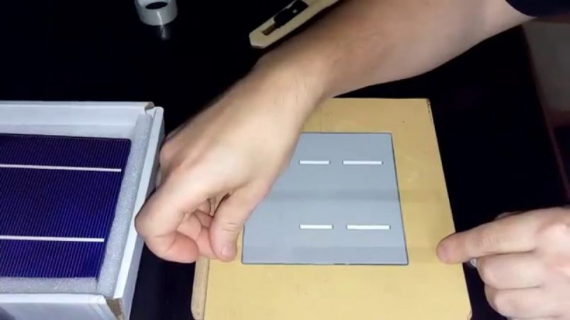 Нужно смонтировать элементы, разложив их поверхностью вниз на стекло. Делают пайку с «+» на лицевой и «-» на обратной стороне. Соединяют контакты. Припаивают рядами. Затем элементы надо приклеить, нанеся в середину каждого герметик.