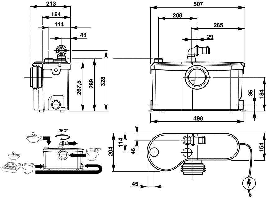 - Установка происходит в непосредственной близости к насосу, который выводит стоки.