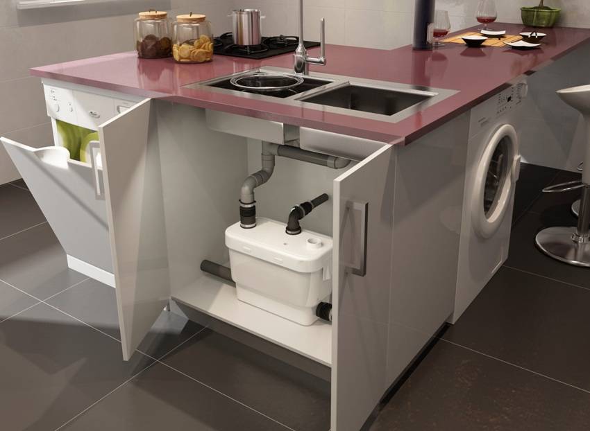 - дают возможность устанавливать кухонные устройства и сами раковины ниже разводки канализационной магистрали и даже в подвальных помещениях;