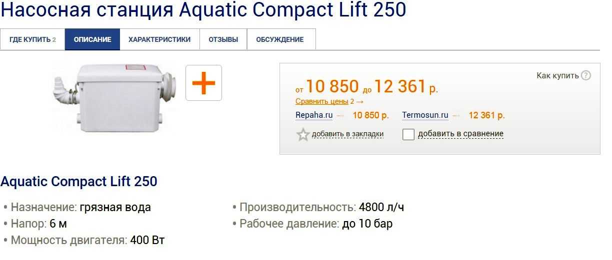 Например, насос-измельчитель французской компании Sanibroyeur (SFA) можно приобрести за 420 евро. Компания SFA Group (Франция) предлагает купить насос для принудительной канализации за 628 евро. Изделия этой компании обладают уникальными техническими данными: