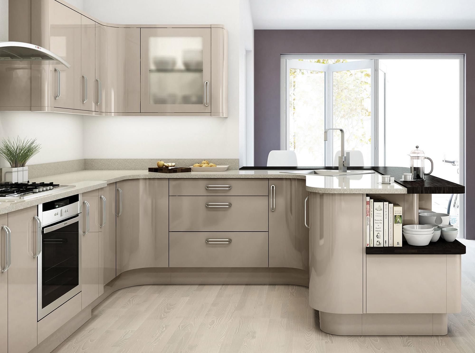 При выборе гарнитура для лучшей вместительности стоит обращать внимание на нижние шкафы с полками, а не с распашными дверьми
