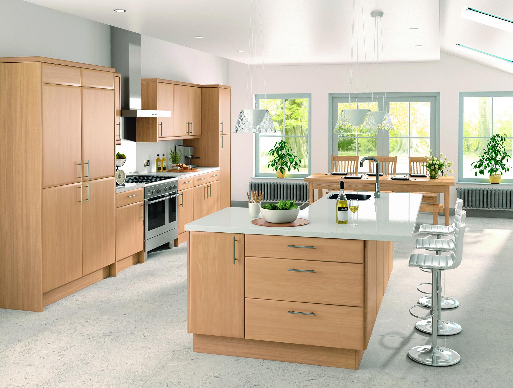 Важно помнить и о том, что оттенки обоев и гарнитура должны дополнять друг друга. При установке мебели светлых оттенков дизайн стен можно сделать более практичным, например, персиковым, голубым или зеленым