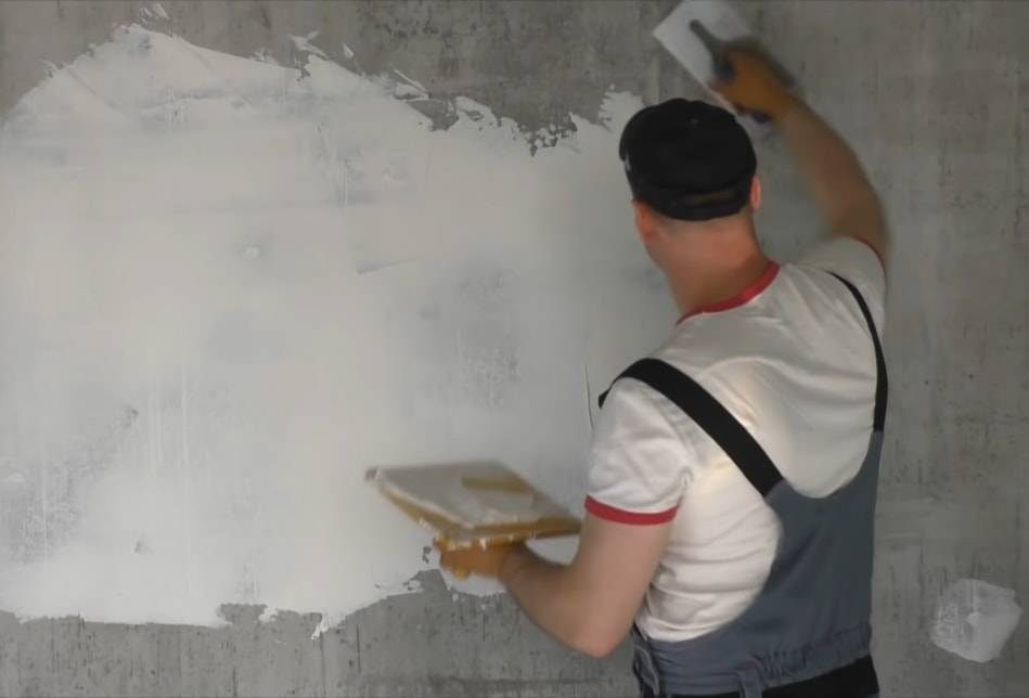 Это название говорит само за себя: небольшим шпателем шпаклевку наносят на стену в виде «ляпов» — крупными пятнами, а затем, с помощью длинной гладилки массу равномерно распределяют по всей поверхности. Этот метод позволяет выполнить отделку быстро, но физически тяжелее предыдущего, так как, чтобы выровнять материал гладилкой, длиной от пятидесяти сантиметров, понадобятся мускулы.