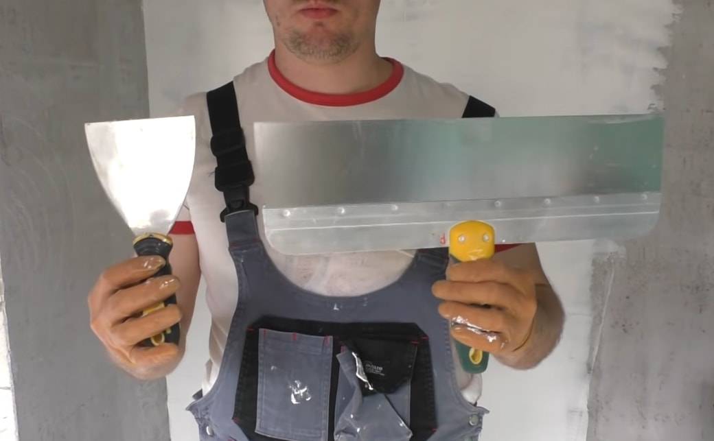 Выбирать главные инструменты (шпатели) необходимо сразу нескольких размеров. Большой имеет ширину 50-60 см, средний — 25 см (используется для работы в углах), малый — 5-10 см (для доступа в неудобные места и для заделки погрешностей).