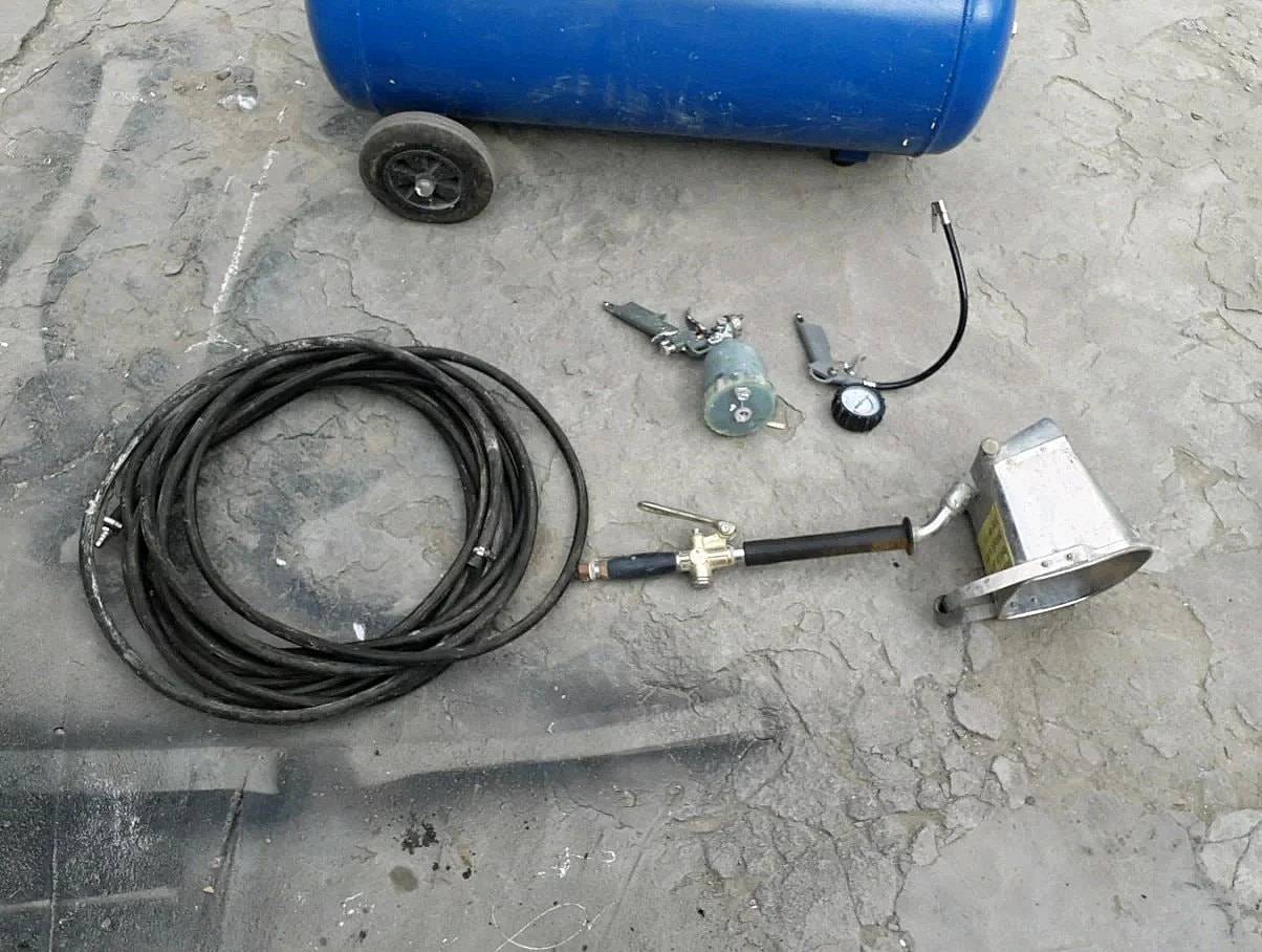Полумеханический метод также требует наличия компрессора или нагнетательного бака – таким образом шпаклевка как бы «набрызгивается» на стены, что также значительно быстрее, чем нанести ее вручную, хотя и медленнее, чем в первом случае.