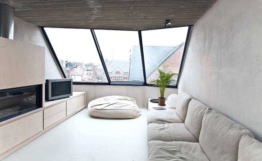Шикарный вид из мансардного помещения обеспечат стеклянные стены и потолок