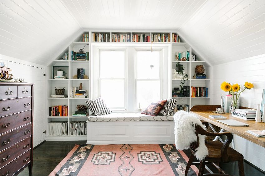 Почему бы не организовать на чердаке мастерскую. Если вы любите поработать руками не выходя из дома, такая идея вам наверняка будет по душе. Уединение на верху за любимым делом привнесет не только удовлетворение и возможно дополнительные деньги. Ведь в наши дни хорошие и нужные вещи сделанные руками ценятся высоко.