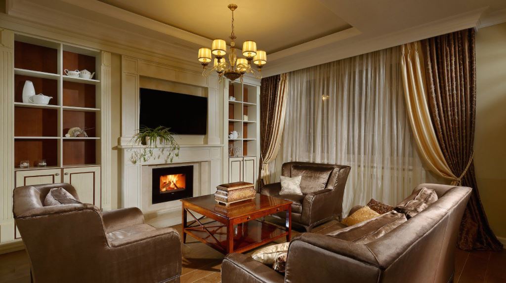 - камин – это обязательный объект в жилом пространстве англичан, но сегодня он необязательно должен быть настоящим, для создания стиля воспользуйтесь его имитацией или электрической версией