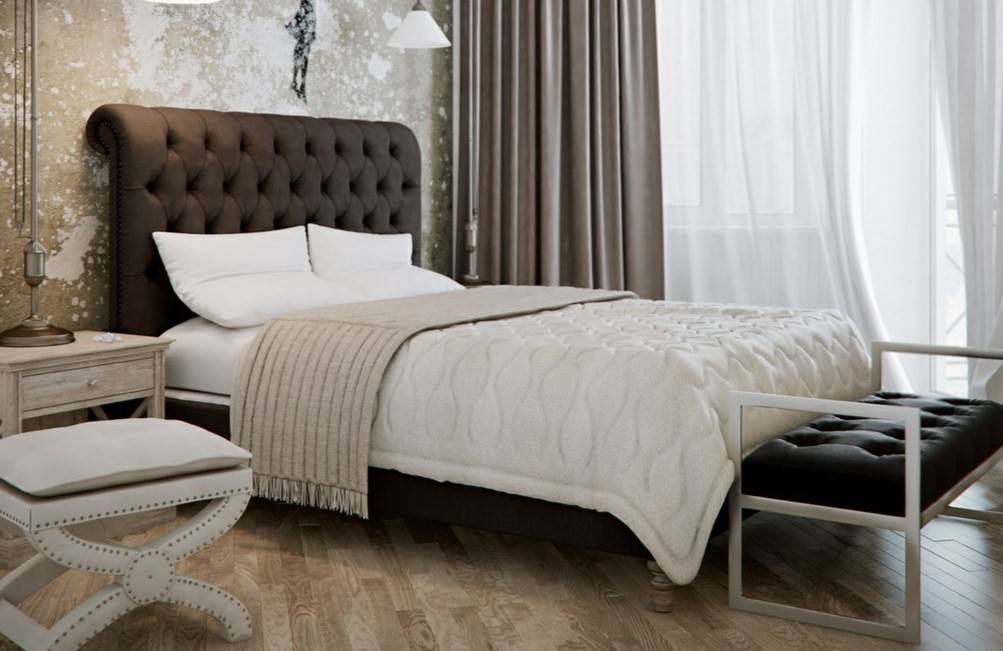 Беж. Это решение позволит выделить элегантность спальни. Беж можно применять для оформления пола с обоями такого же цвета. Его принято объединять с оттенками персика, кофе, малины и фисташки. Чтобы спальня была по максимуму романтичной, нужно не перегружать беж тяжелой кроватью и темным текстилем. Когда задача напротив, сделать необычные акценты на нежном фоне, тогда стоит купить золотистую тюль, оформить декоративный свет и повестить яркие панно.