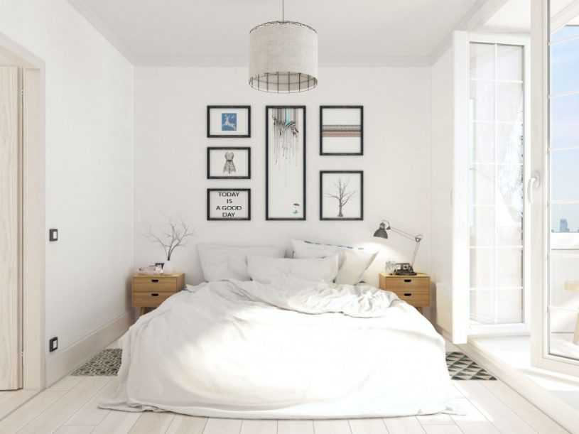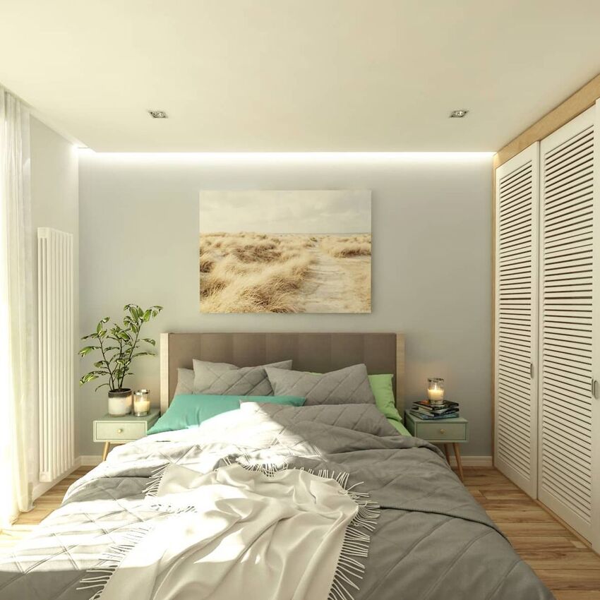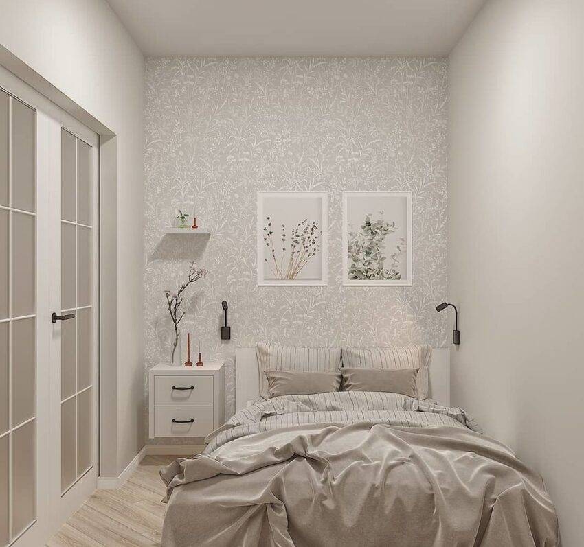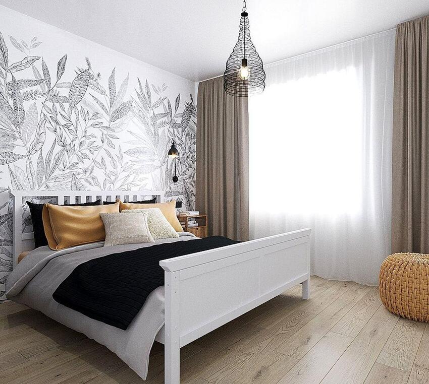 За счет преобладающей светлой палитры, скандинавская стилистика идеально вписывается в малогабаритную спальню.
