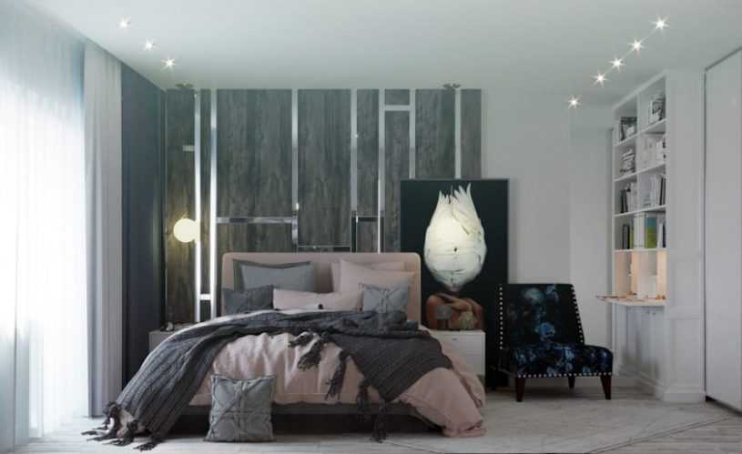Розовая. Чуть менее актуальный цвет, зато позволяющий добиться оригинальности в дизайне спальни