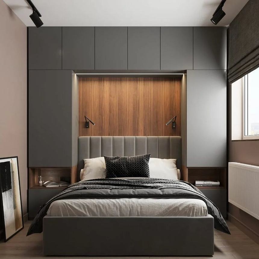 Шкафы, создающие уютную рамку около изголовья кровати, станут еще одним способом экономии места и элементом нестандартной спальни.