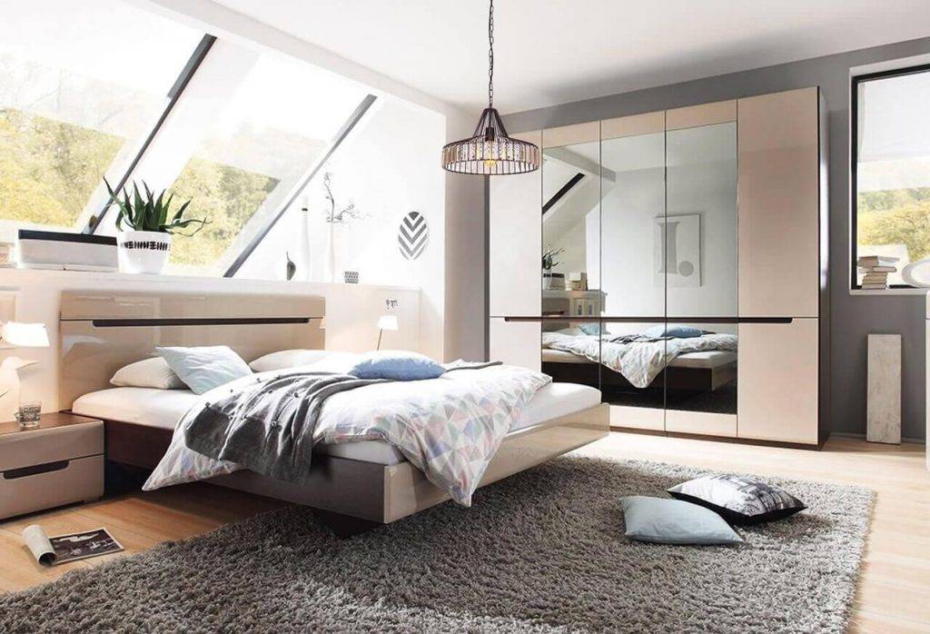 Зеркальные или глянцевые стенки помогут сделать спальню светлее, просторнее и выше. Гладкие фасады облегчат уборку и не дадут пыли ни малейшего шанса остаться на поверхности.