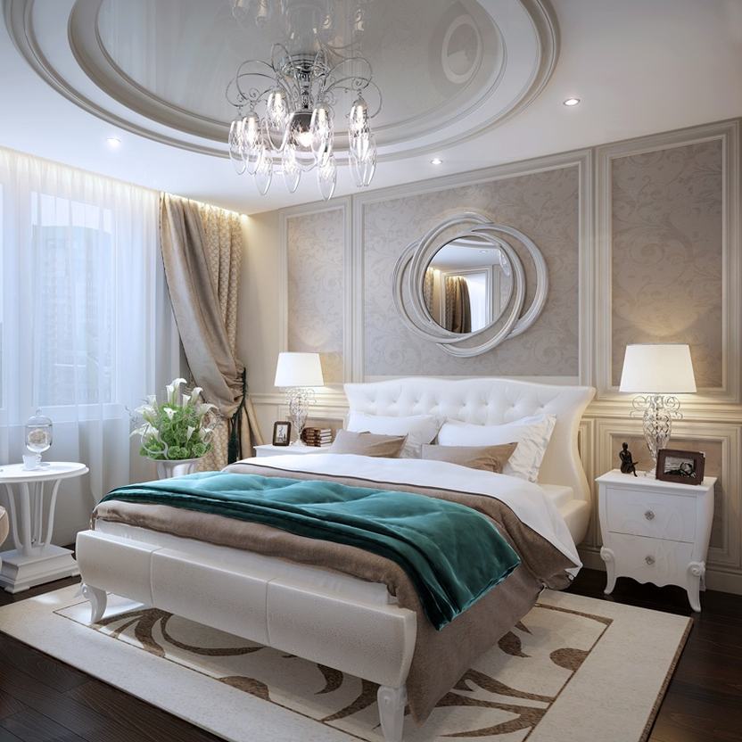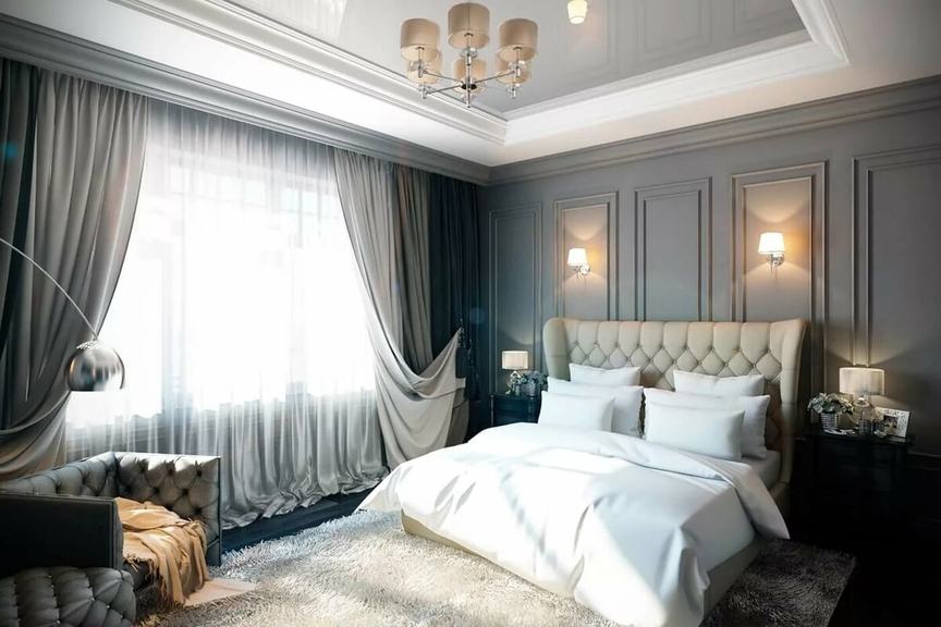 Классика, модерн, арт деко — стилистика, которая в полной мере раскрывается в просторных помещениях, к примеру, в частном доме. Куртуазные, несколько гламурные, напыщенные декоры, резные элементы мебели, позолота, серебро «звучат» в больших спальнях. В моде неоклассические спальни в светлых тонах, белом цвете, бежево-сливочных оттенков.