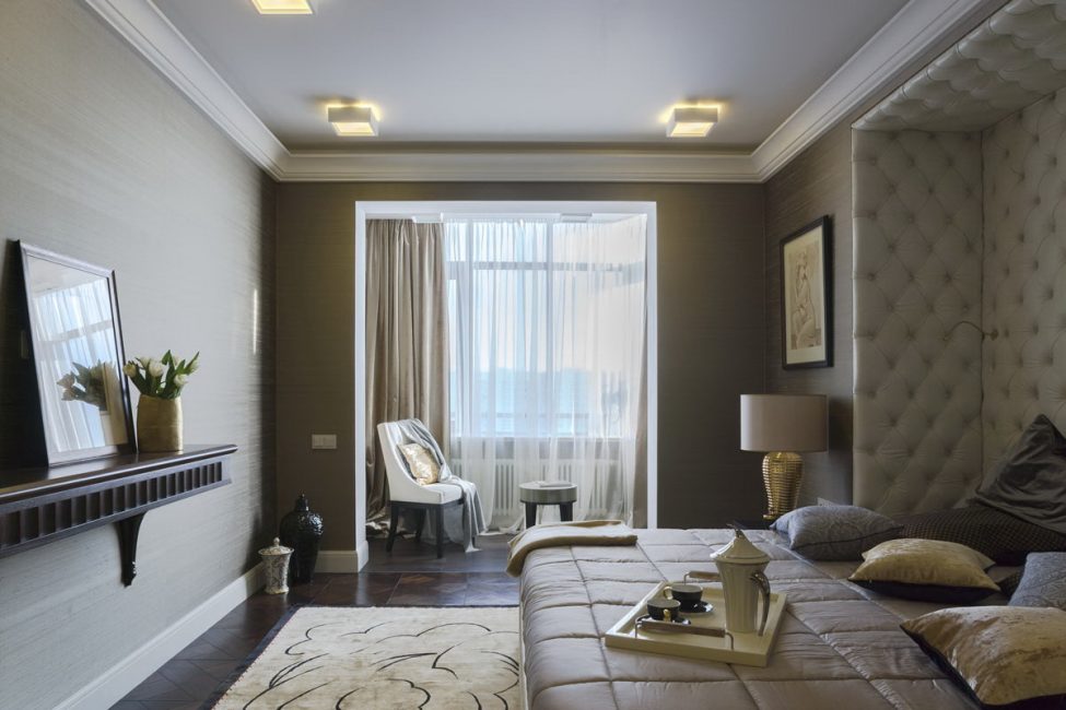 Грамотное зонирование пространства и использование всех преимуществ помещения позволяют создавать просторные и в тоже время уютные спальни, отвечающие всем высоким требованиям жилья класса «люкс».