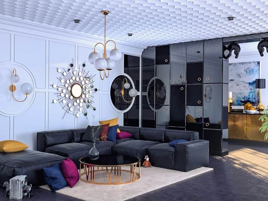 Современный арт-деко – это особая эклектика. Сочетание многих стилей должно быть органично и не вычурно. Зачастую, в этом стиле можно «перебрать» с роскошью, что будет оставлять неприятный осадок.