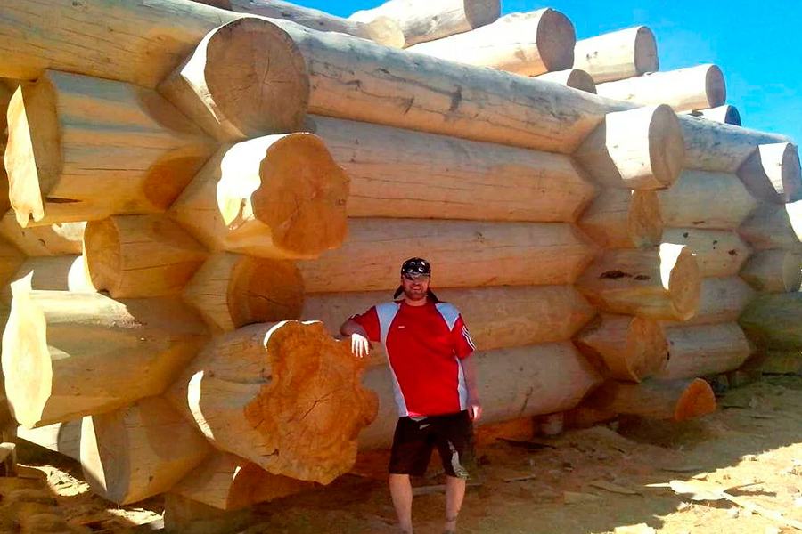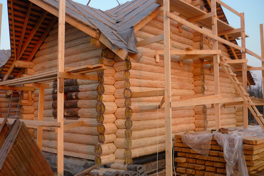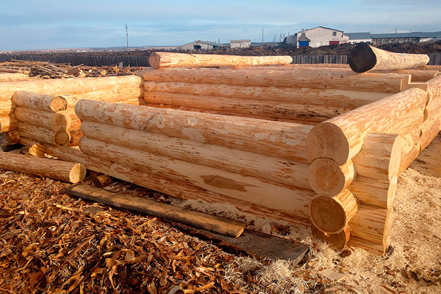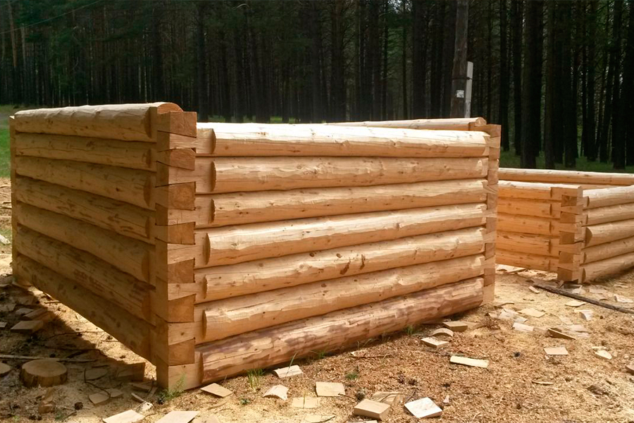 - При самостоятельной заготовке материала бревна тщательно зачищаются от коры и сучков скобелем. При этом на краях оставляются полосы шириной до 20 см для естественной усадки древесины.