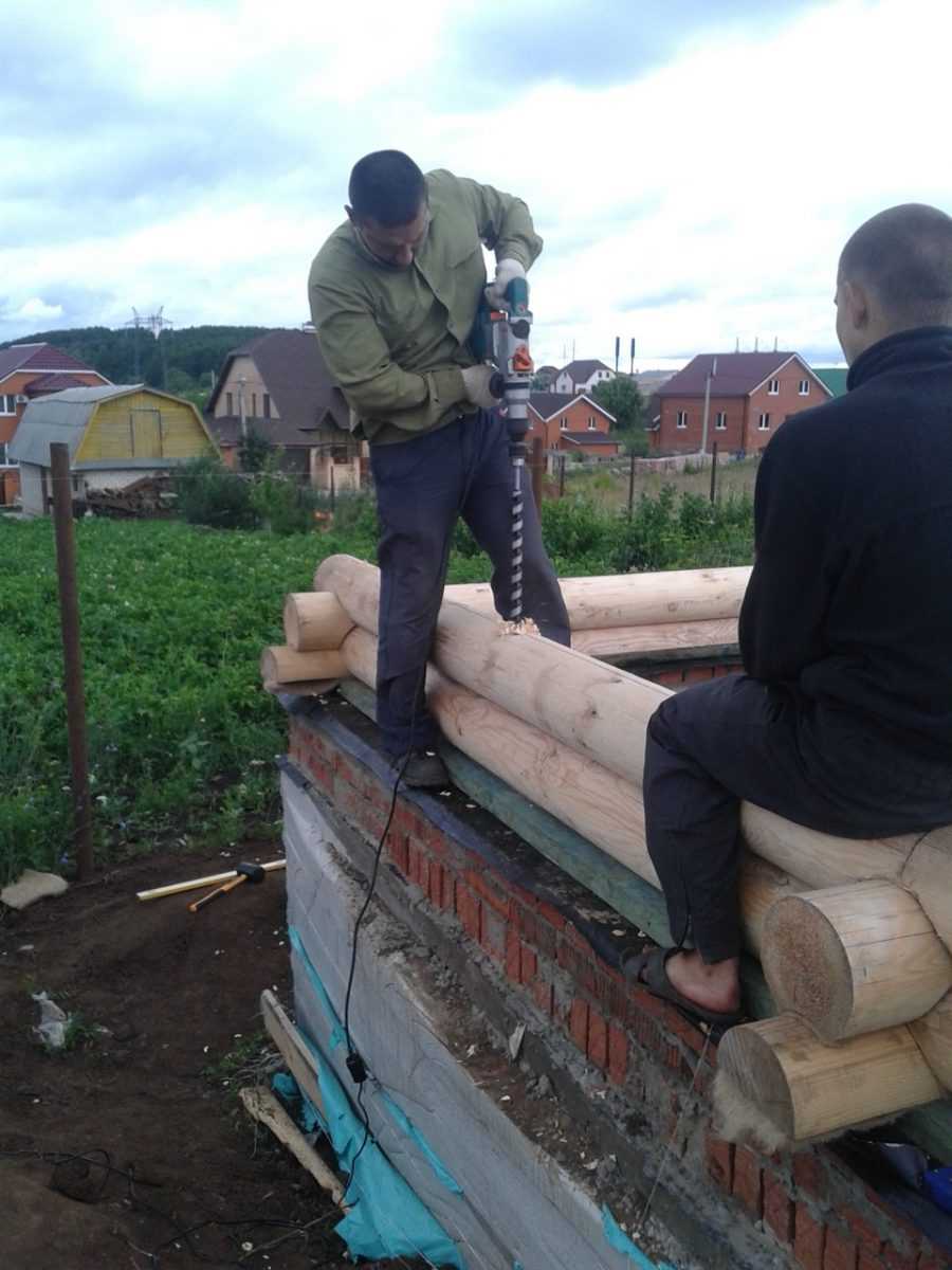 - Перед началом крепления бревна или бруса к фундаменту требуется уложить гидроизоляционный слой.
