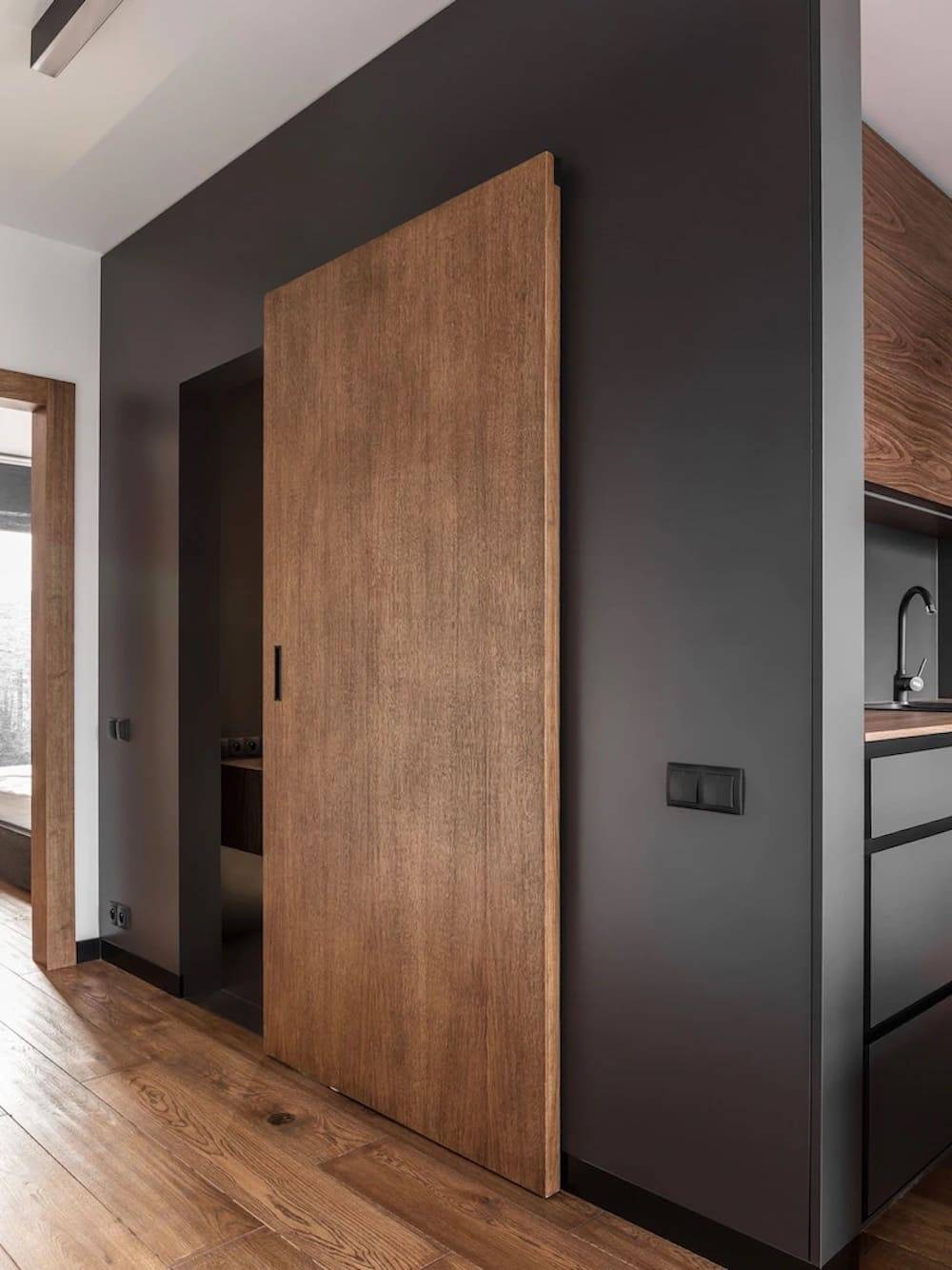 Есть и нестандартное решение — заказать шпонированные двери, у которых с двух сторон будут разные цвета. Они обойдутся дороже, чем обычный вариант, но это поможет создать идеальную цветовую гамму в каждой комнате.