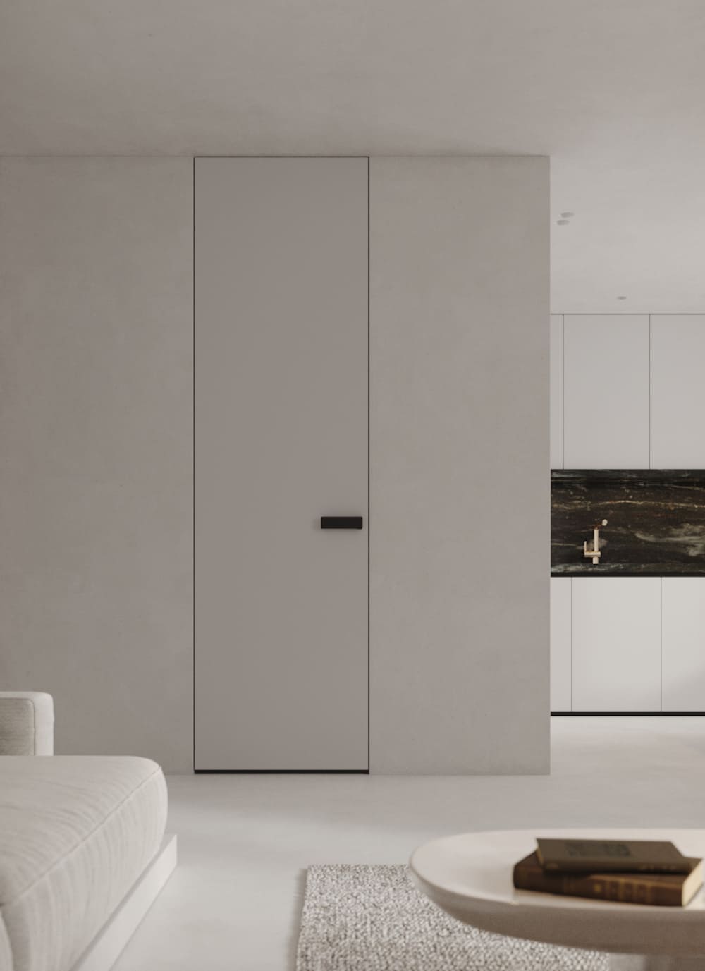 Такие встраиваемые двери-пенал, удобно прячутся внутрь стены, не нарушая целостный интерьерный облик и отличаются высоким уровнем шумоизоляции.