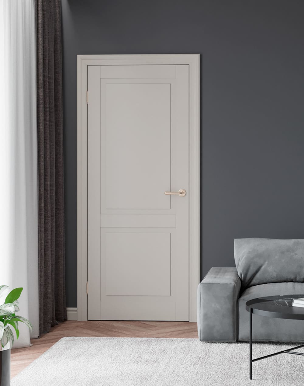 К выбору дверей в этом году нужно подходить индивидуально, в зависимости от цвета пола, мебели, стен, дизайна помещения. Но здесь не существует строгих правил. Невозможно найти двери какого-то особого цвета, чтобы они подходили под все. Разве что белые полотно и коробка, которые прекрасно выглядят на фоне любых стен — от молочных и бежевых до темно-серых.