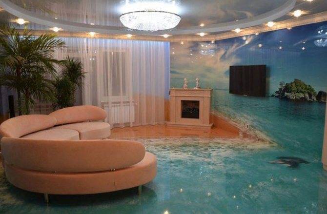 Помещение оформленное с помощью стереоскопических обоев, практически не имеет визуальных границ
