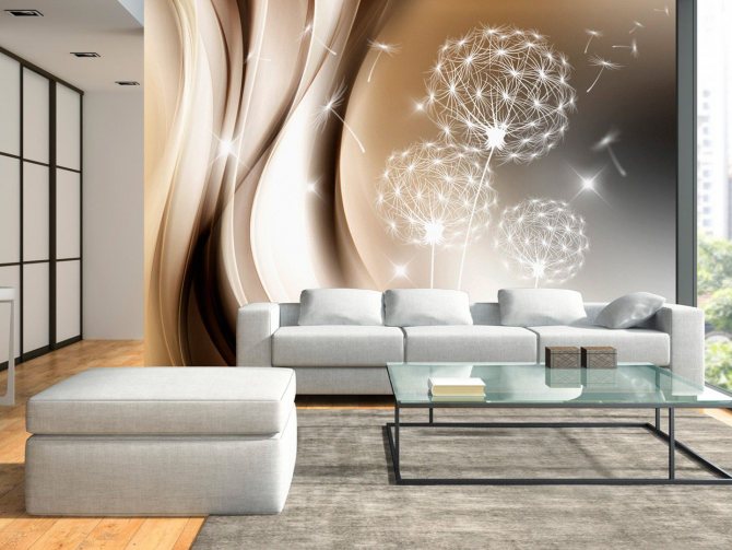 обои с абстрактным рисунком в гостиной