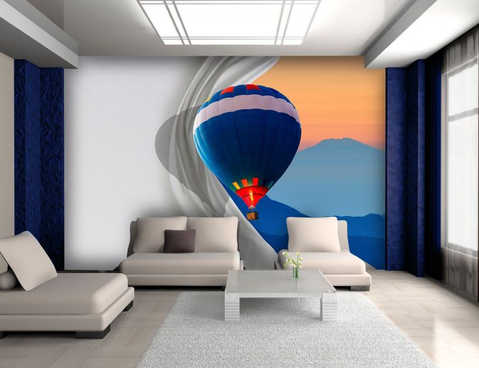 В помещениях, имеющих достаточно большое пространство, уместными будут фактурные обои, многоцветные комбинации. Все должно быть гармонично и отвечать общей атмосфере помещения, соотноситься с предметами интерьера. При использовании полотен с объемными, панорамными или насыщенными картинками целесообразно отказаться от мебели сложной конструкции.