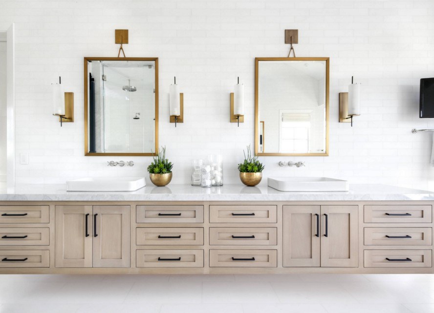 Этот пункт не спроста идёт 2-ым. Раковина встроенная в столешницу + крутой смеситель критично важны и поднимают уровень интерьера ванной на принципиально другой уровень.