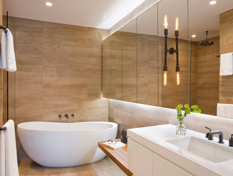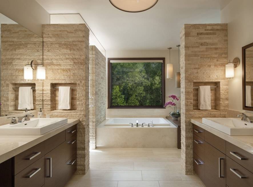 Основная идея современного дизайна ванной комнаты — целостный внешний вид, как будто ванная вырезана из единого куска камня. Если сейчас это кажется абстрактным, то к концу материала вы будете четко представлять как сделать красивый и современный интерьер ванной комнаты: