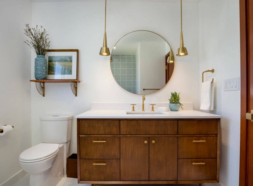 Мода не всегда адекватна. Но идея подвешивания действительно делает ванную комнату и красивой, и современной, и практичной. Нет этого тёмного пространства под мебелью, под которое постоянно забивается грязь, и при этом там неудобно убирать из-за ножек.