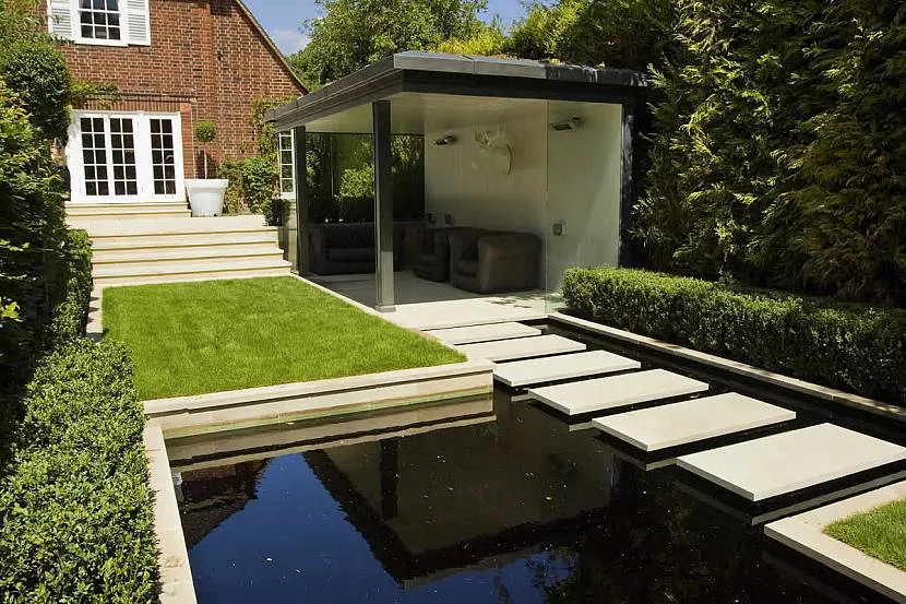 - Желательно присутствие водоёма — настоящего или искусственного. Такие меры позволят расширить экосистему сада. Но даже самодельный пруд должен казаться настоящим.