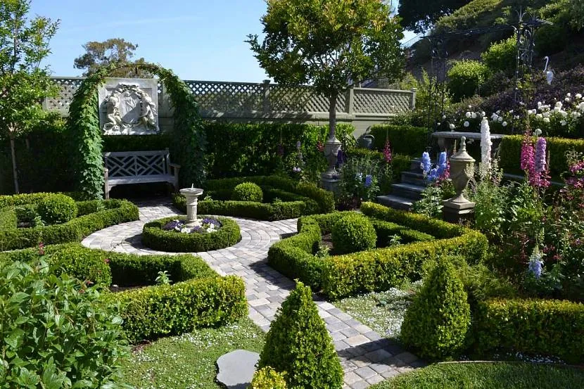 Такой стиль еще называют регулярным. Все дело в том, что для него характерны симметрия и строгое распределение растений и элементов декора. В организации французского стиля используют осевую систему — это когда в центре расположен основной объект, например, фонтан, от которого идут дорожки или грядки. В центре композиции также может находиться дерево, небольшой пруд, скульптура. Все детали дизайна должны быть размещены симметрично друг другу.