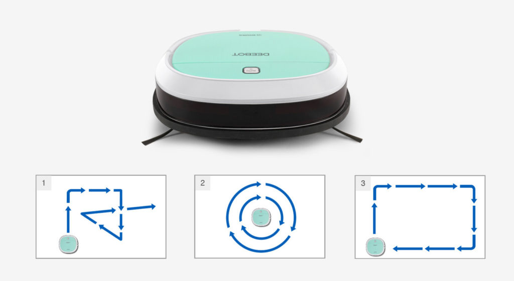 При встрече с препятствием устройство для его преодоления выполняет один из алгоритмов действия, которые заложены в нем. Для выбора конкретного варианта служат специальные сенсоры, расположенные по бокам устройства. Они распознают препятствие и меняют траекторию движения. Пылесос работает от аккумулятора. Его заряд осуществляется через базу, которая входит в комплект к устройству. Она должна располагаться в центральной части комнаты. Пылесос совершает возвратно-поступательные движения, отдаляясь от нее при выполнении уборки и возвращаясь для пополнения заряда аккумулятора.
