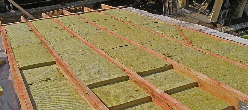 Над стропилами выстраивается каркас, после крепится вагонка, образуя сплошной потолок, сверху она покрывается пароизоляцией. Поверх набиваются доски, установленные на тонкую грань, сечением 200х50 мм и шагом 60 см. В промежутках между ними укладывается в несколько слоёв утеплитель, образуя толщину 200 мм. Вся эта конструкция накрывается паропропускающей мембраной, которая фиксируется контробрешёткой. Строение крыши завершается созданием настила из плит OSB, поверх которого выклеивается мягкая черепица.