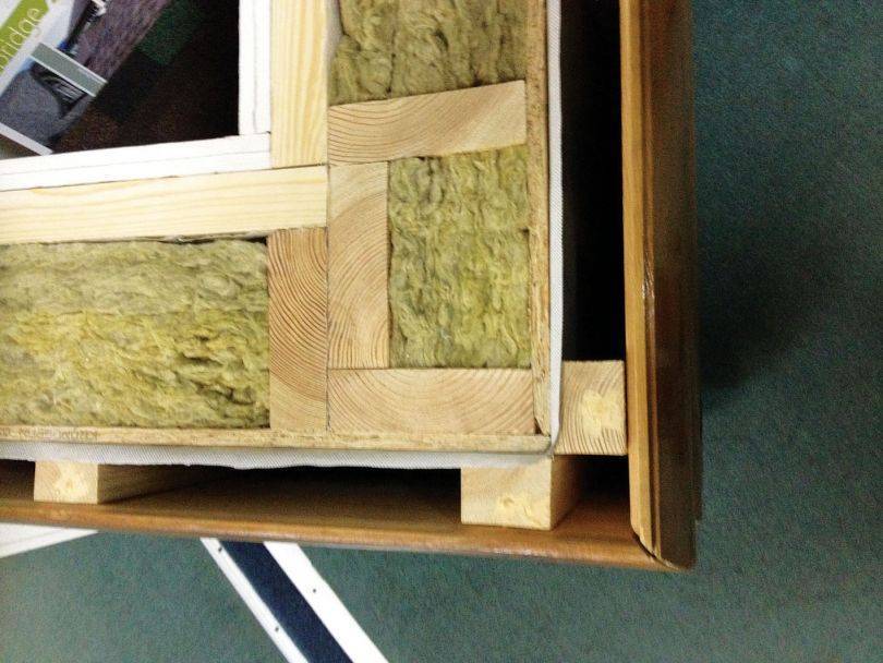Ведь в этом месте единственное утепление – это изоплат снаружи, и перекрестное утепление изнутри. А если бы была чисто американская схема, то утепления в этом участке стены попросту не было бы, голая деревяшка снаружи вовнутрь