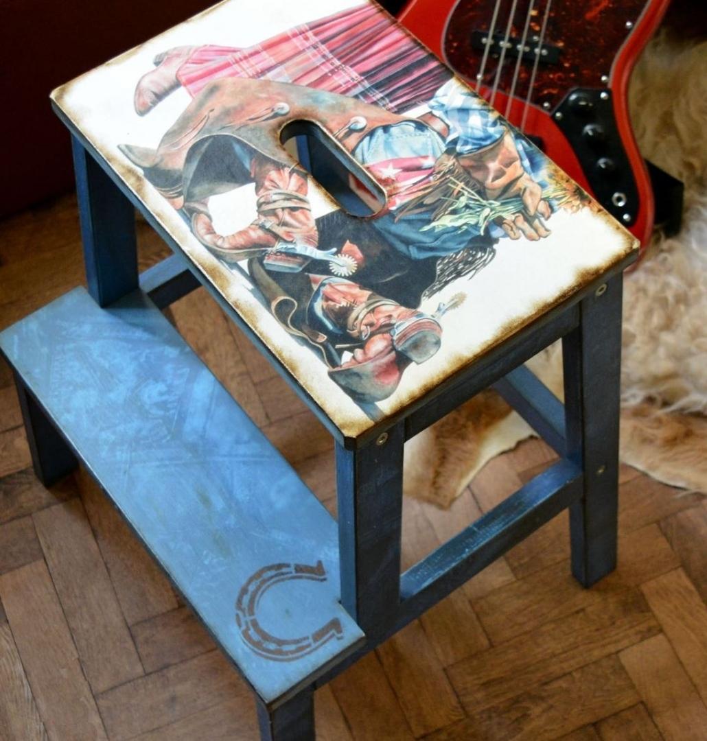 Вы можете разрисовать стул-стремянку в соответствии со своей фантазией.